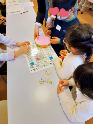 ①当団体考案・作成した「すごろく」や「カード」を活用して数量感覚や計算の意味を楽しく学ぶ方法をワークショップ形式で紹介しています。